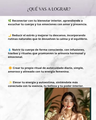 Recibirás el Manual de Autocuidado Natural para Mujeres + 3 bonos exclusivos: